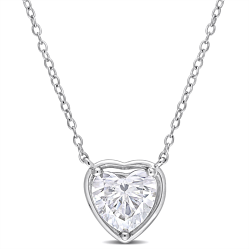 This heart-cut moissanite solitaire station necklace is crafted in luminous sterling silver and features a heart-cut prong-set created white moissanite gemstone as its centerpiece in a classic solitaire pendant design, perfect for all occasions. Elegance and sophistication at its finest, this gemstone necklace is sure to make a perfect versatile addition to any jewelry collection.