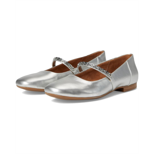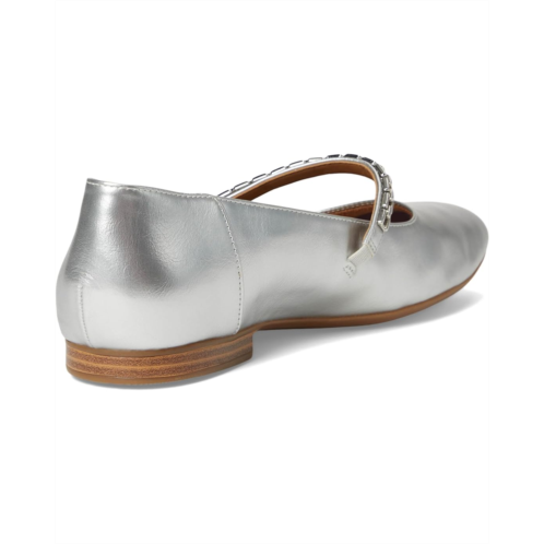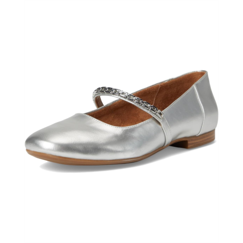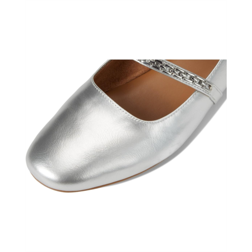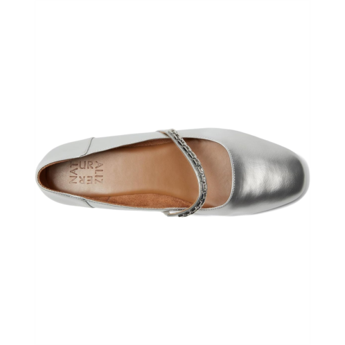 The Naturalizer Kelly Chain, a retro style footwear. Crafted from synthetic upper, faux leather lining, and insole, this pair of shoes features square toe, chainlink strap, low stacked heel, and brand detailing on the footbed. Contour+ Comfort technology for a premium fit and all-day comfort experience.