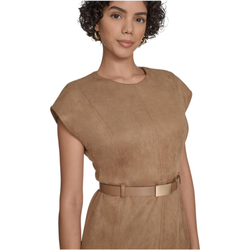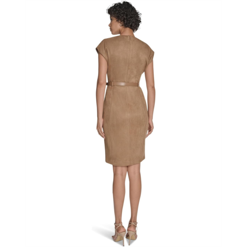 [US] Womens Calvin Klein Suede Belted Cap Sleeve Sheath