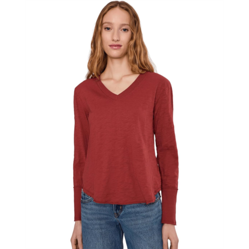 [US] Womens Mod-o-doc Long Sleeve Waffle Mix V-Neck Top