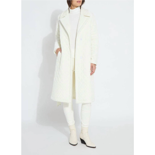 The coolest cape you ever did see.The Starla Quilted Velvet Trench Coat features a trench collar, raglan sleeves, a detachable belt, below-knee length, side pockets and a relaxed fit. Made from custom, 4x-stretch Quilted Velvet a super soft, warm and touchable fabric the Starla Trench is a chic outer layer over our Emerie Sweater Dress or the Victoria Pullover Sweater and Textured Leather Leggings. This machine washable trench is unlined with neat interior binding. 4-way stretchRelaxed fit Model is 5'10, wearing a size S