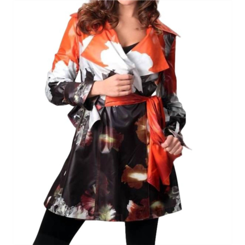 The perfect trench coat that you can throw over any outfit.Bring a bright spot to an otherwise gray day with the vibrant, high-impact pattern of this rain jacket from ANGEL. A self belt and trench styling finish off this fetching look-just add an umbrella!