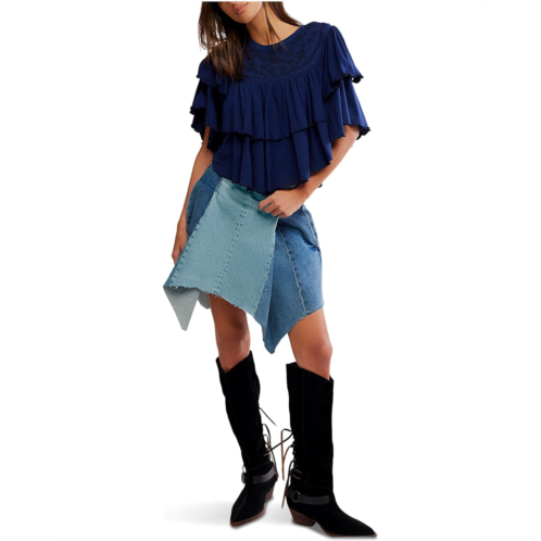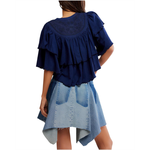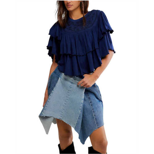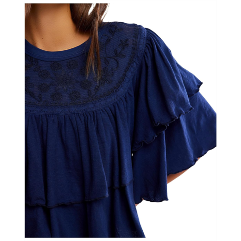 - Tiered, textured & totally on-trend: Rose Party Tee by Free People. Designed to make a statement, this pull-on piece features a flattering crew neckline, feminine ruffled sleeves, and flirty lettuce-edge trim for that perfect touch of whimsy. The swingy, boxy fit gives you room to move while keeping things breezy and fun. Crafted from soft classic jersey, it boasts a uniquely tiered silhouette enhanced by embroidered mesh panels that add just the right hint of elegance.