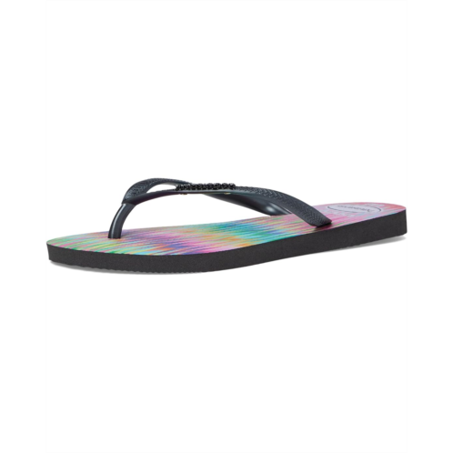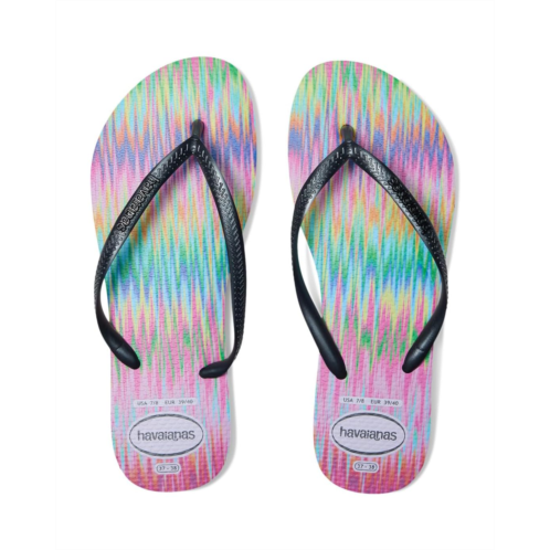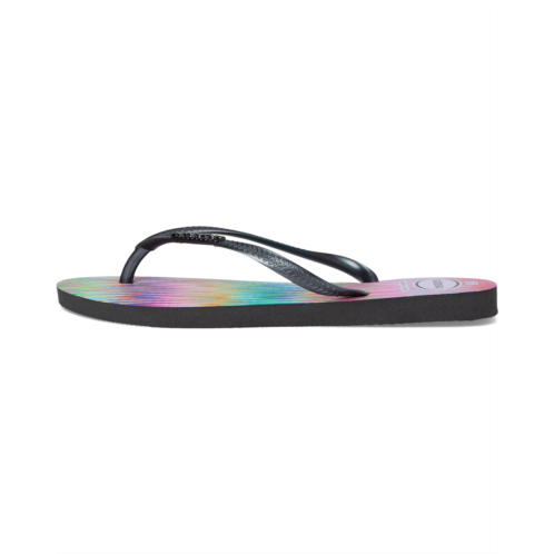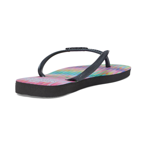 Radiate style donning the Havaianas Slim Bright Sandals. Featuring a sleek, delicate silhouette with thinner soles and straps, this slim design offers a flattering fit with a fun twist. Inspired by timeless stripes but reimagined in fresh, fashion-forward hues, every step is a statement. The metallic Havaianas logo adds just the right touch of glam, while the all-rubber construction - from the upper to the toe post and outsole, guarantees flexible support and easy-breezy wear. Slip them on and feel the sunshine with every stride.