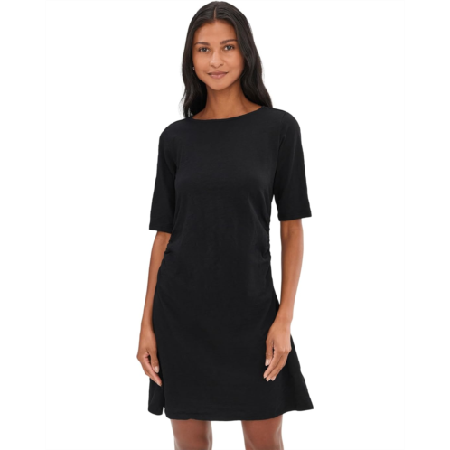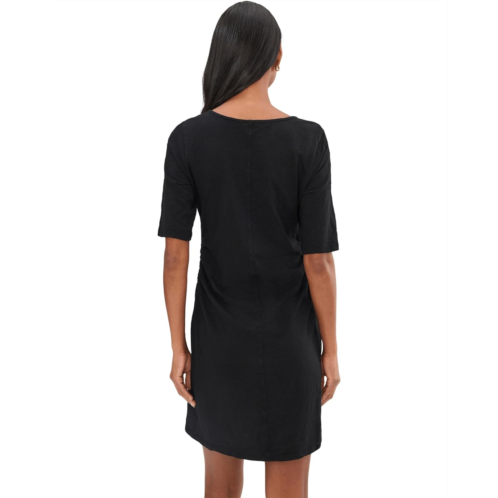 - The Mod-o-doc Elbow Sleeve Below The Knee Shirred Dress serves as the perfect choice for parties, formal events, and other occasions. This below-the-knee dress is styled with elbow-length sleeves, a boat neckline, and a straight hem. Its shirring detail at the sides offers a flattering fit. Made from cotton fabric, this chic dress makes a stylish addition to your wardrobe.