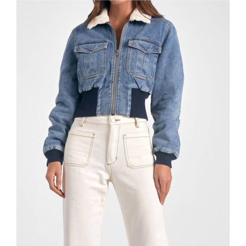 [US] ELAN denim jacket fur collar in blue