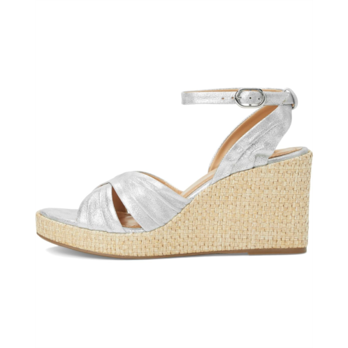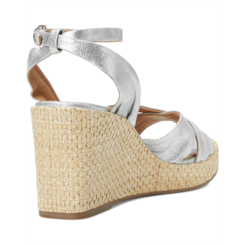 Unleash your summer soul wearing the Johnston & Murphy Marcia Cross-Band Sandal. Crafted from glove leather upper, leather lining, and insole, this pair of sandals features round toe, raffia-wrapped wedge heel, cushioned OrthoLite footbed with leather covering, and buckled closure.