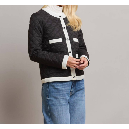 You'll be reaching for this puffer jacket all season long.Meet the ABLE Quilted Contrast Trim Puffer Jacket in sleek black, perfect for transitional weather throughout spring, fall, and winter. Featuring long sleeves and crafted from 100% nylon, this jacket offers both style and functionality. Originating with a solid pattern and a convenient snap closure, it's designed with practicality in mind with lined interiors and handy pockets. Model is wearing a US size small (5'7' tall).