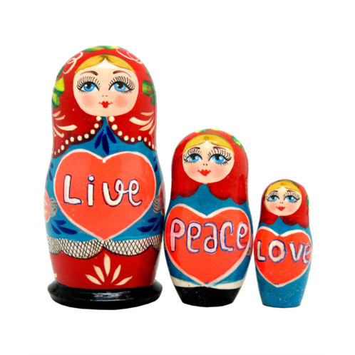 [US] G. DeBrekht designocracy live peace love 3-piece russian matreshka nested doll