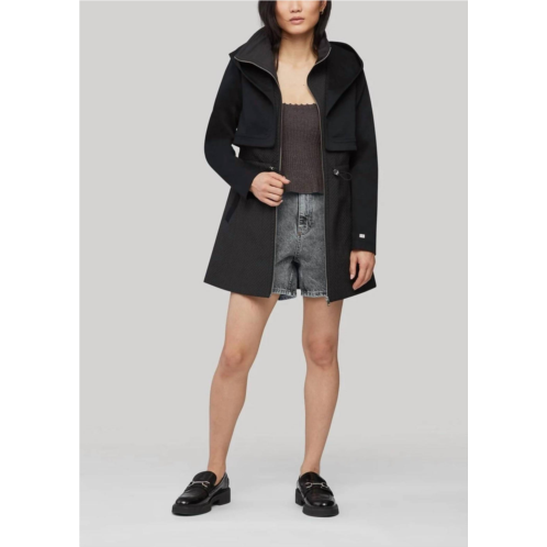 [US] SOIA&KYO mixed media coat with dramatic hood and thermolite fill in black