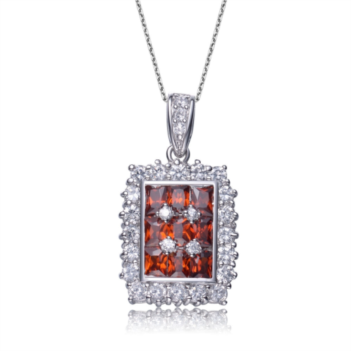 [US] Genevive sterling silver ruby cubic zirconia rectangle pendant necklace