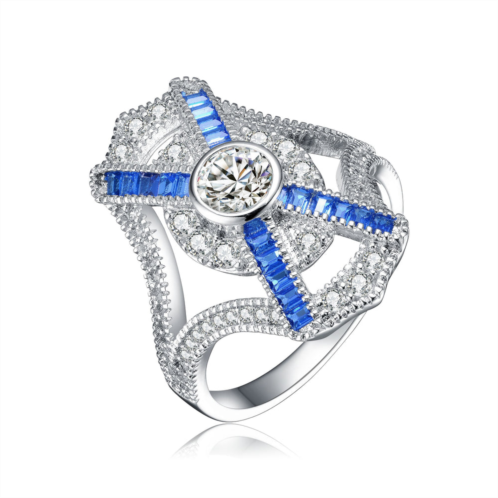 [US] Genevive sterling silver sapphire cubic zirconia geometrical coctail ring