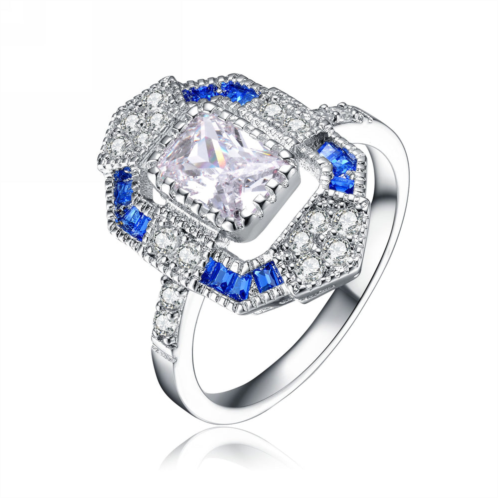 [US] Genevive sterling silver sapphire cubic zirconia coctail ring