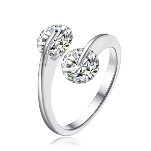 [US] Genevive sterling silver cubic zirconia two stone engagement ring