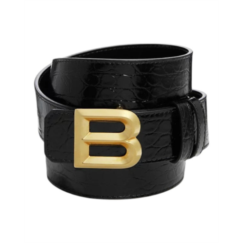Bally B Bold Croc Embossed Logo Buckle Leather Black Belt - 6305821