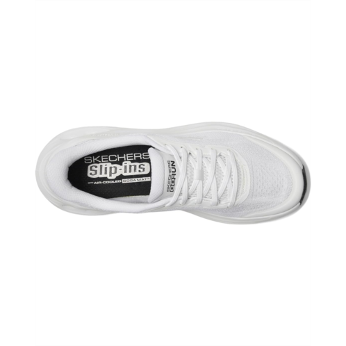 Experience the ultimate in cushioning and response wearing SKECHERS Max Cushioning Glide Step Hartford Hands Free Slip-Ins. Designed with exclusive Heel Pillow, this athletic laced slip-on style features an engineered knit upper, Skechers Air-Cooled Goga Mat insole, Ultra Go midsole cushioning, and an anti-slip Goodyear Rubber Outsole. It comes with round toe design, lace detailing, and brand detailing on the tongue, sides, and footbed.