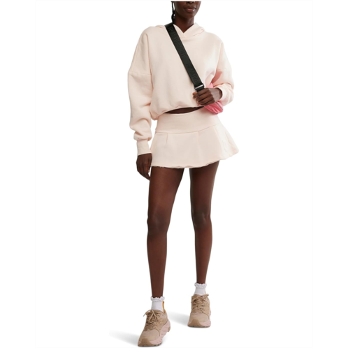 - TheFP MovementSprint To The Finish Skirt Set is a sporty-chic duo designed for effortless style and comfort. This two-piece set features a cropped, relaxed-fit hoodie with a high neckline, ribbed trim, and a pleated back finished with an embroidered branding patch. Paired with an ultra-short mini sweat skirt, the bottom offers a mid-rise fit, elasticized waist, pleated detailing, and a split raw hem that adds movement and edge.
