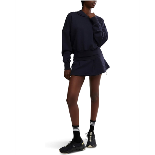 - TheFP MovementSprint To The Finish Skirt Set is a sporty-chic duo designed for effortless style and comfort. This two-piece set features a cropped, relaxed-fit hoodie with a high neckline, ribbed trim, and a pleated back finished with an embroidered branding patch. Paired with an ultra-short mini sweat skirt, the bottom offers a mid-rise fit, elasticized waist, pleated detailing, and a split raw hem that adds movement and edge.