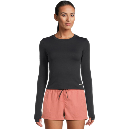 - The Mountain Hardwear Peak Knit Long Sleeve redefines your everyday layers with a blend of sporty style and technical comfort. Designed with a modern slim fit and a flattering cropped length that sits just below the waist, this top is equal parts style and function. The ultra-soft performance rib feels luxurious against the skin while offering breathable stretch for all-day wear. Forward shoulder seams and low-profile cover-stitching minimize friction, keeping you chafe-free whether you're exploring trails or moving through city streets. Built-in HeiQ Mint plant-based odor control technology keeps you feeling fresh and confident, no matter how active your day gets. With its classic crew neckline, long sleeves, and easy pull-on design, the Peak Knit Long Sleeve is versatile enough to pair with leggings, denim, or layered under jackets.