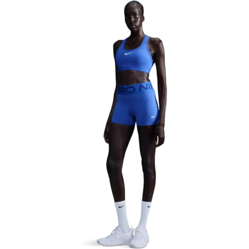 - You're on the move. Your padding shouldn't be. The Nike Swoosh Medium Support Bra 's sewn-in pads stay in place so you can work hard without worrying about them shifting or folding. Great for training workouts and dance classes, this medium support bra gives you a snug hold that helps keep everything in place. Plus, sweat-wicking, adaptive material quickly recovers its shape so you can stay comfortable throughout your workout.