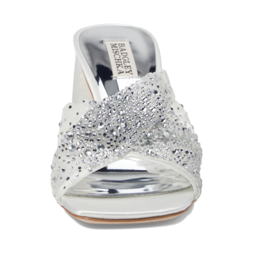 - Chic and cushioned, the Badgley Mischka Camelia sandals feature eye-catching rhinestone embellishment all over the strap that makes them an ideal choice to style up your outfits. The slip-on style of these heeled sandals offers easy on and off. From your cocktail dresses to evening gowns, these mule sandals are an ideal choice. Make a glamorous entry into any party or event by wearing these embellished sandals.