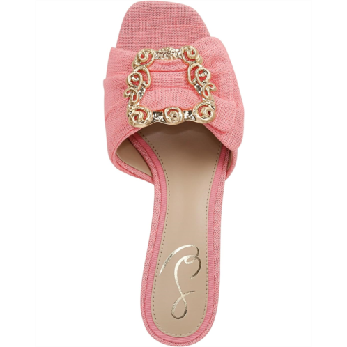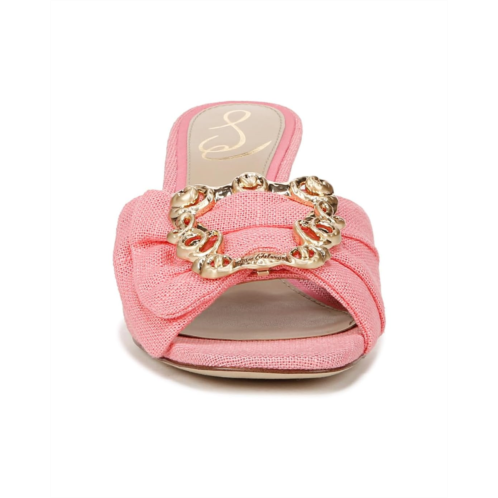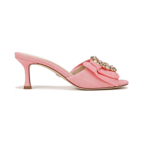 - Complete your fabulous weekend look in the breezy ensemble and fabulous Sam Edelman Pietra heels with a gorgeous ruflled vamp accented with a unique squared frame sparkling with rhinestones.