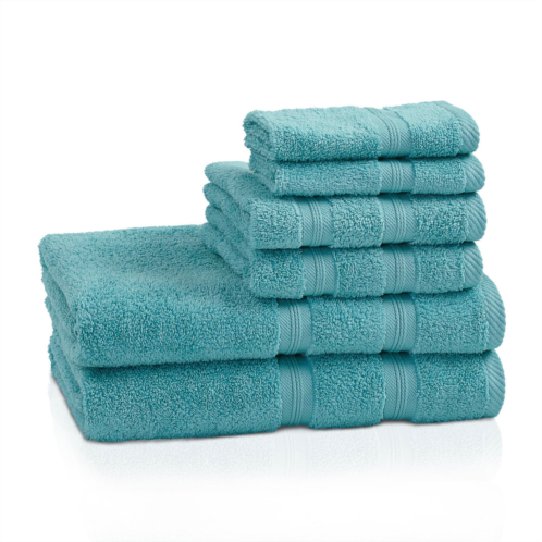 Step out of the shower or bath and wrap yourself in the amazingly soft Smart Dry Zero Twist Cotton 6-Piece Towel Set. These quick drying towels are expertly crafted from premium Cotton to ensure maximum strength, softness, and absorbency. This machine washable bundle is available in an array of long-lasting solid color options with finished, hemmed edges for added durability.