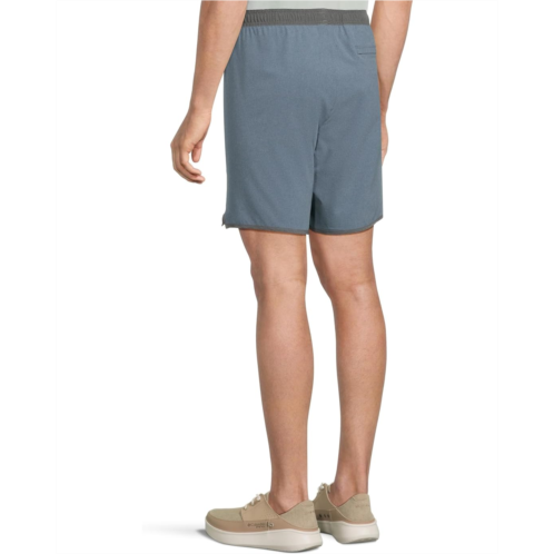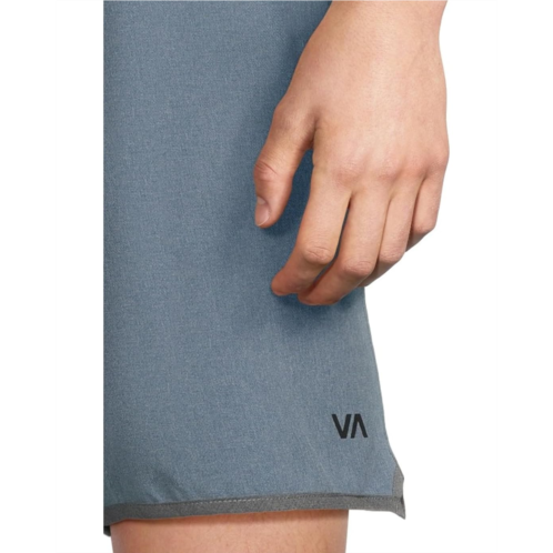 - Combining heritage design and performance-enhancing comfort, the RVCA Yogger Stretch Contrast 17' Shorts have you covered. These men's athletic shorts are made from a 4-way stretch polyester and feature a mid-rise elastic waistband with drawcord closure, two hand pockets on the front, one zippered welt pocket at the back, and a slightly scalloped hem with split side vents. These are topped with RVCA screen print at the left leg and brand label at back pocket for added authenticity.