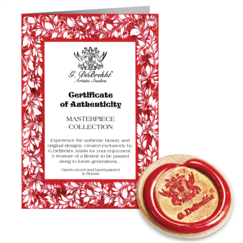 Masterpiece Collection of Handpainted Santa Claus Figurine hand carved in Russia from light seasoned Linden wood. Free-handpainted by the skilled G. DeBrekht Artists in watercolor, acrylic, or oil combinations in G. DeBrekht's unique, signature painting style. The Old-World Classic Art, the wonderful collectible to enjoy, and memorable nostalgic Christmas gifts. Limited Edition Certificate, Gift Box. Note - One Year Exchange Policy applies to all G.DeBrekht Woodcarved Masterpieces for stores' protection of selected design - any woodcarved piece that has not been sold can be exchanged within a year for any other product from the Masterpiece Collection.