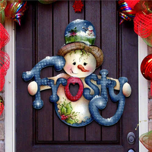 [US] Designocracy jamie mills-price christmas frosty wooden decorative door hanger