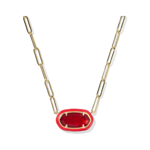 • The Kendra Scott Elisa Enamel Frame Paperclip Necklace is a playful twist on the brand's iconic pendant. It features the signature Elisa oval pendant framed in color-coordinated enamel, suspended from an on-trend paperclip chain. Crafted from gold-plated brass, the necklace includes an adjustable lobster clasp closure for secure wear.