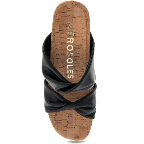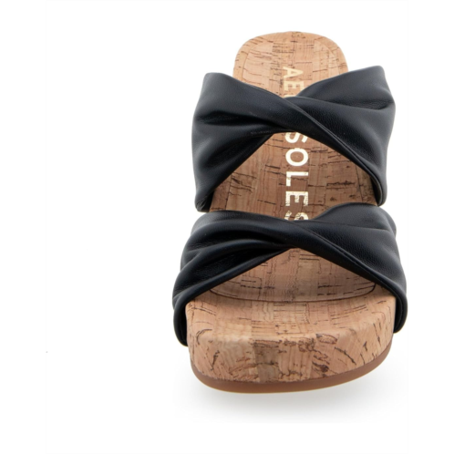 Embrace your sharp look donning the Aerosoles Mercer. These architectural cork wedge heels feature diamond-flex thermoplastic outsole for traction and stability, polyurethane upper with dual curved strap design, and slip-on construction.