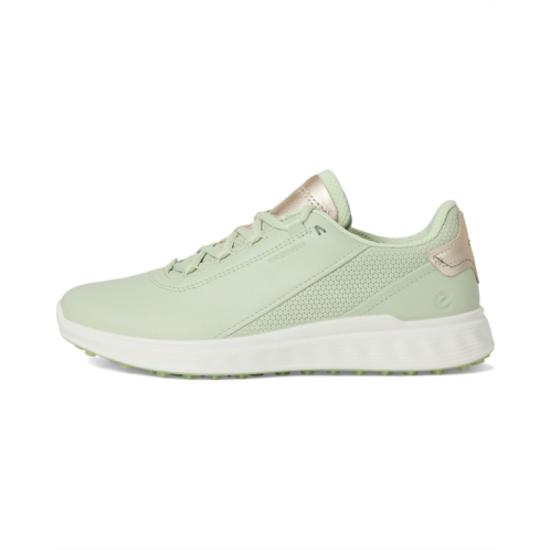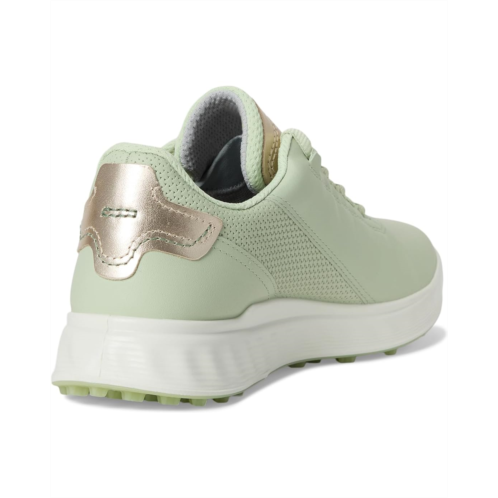 The ECCO Women's Golf S-Three redefines golf footwear with a fresh fusion of performance and fashion. Crafted with a premium leather upper featuring sleek metallic accents, this waterproof golf shoe delivers unmatched durability and breathability. The ECCO-TEX membrane ensures dry comfort, while side perforations enhance airflow for all-day freshness. Engineered for stability, X-TENSA INVISIBLE TECHNOLOGY provides dynamic support, while the E-DTS outsole-with 100 TPU traction bars and 800 angles-offers superior grip on any terrain. Complete with a cushioned EVA insole and lace-up closure, this hybrid golf shoe keeps you stylish and secure with every swing!