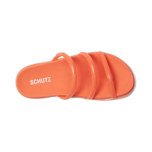 - Exude chic versatility in these super stylish Schutz Polly Sporty slip-on sandals. With a rounded toe silhouette, the footwear features polyurethane upper and a toe-post for a secure fit.
