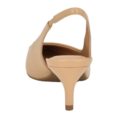 - Be ready to jealous your friends at the party by wearing the stylish and trendy Calvin Klein Dainty heels. These kitten heels are designed with pointed toe design, elasticized slingback strap closure, and faux patent leather upper.