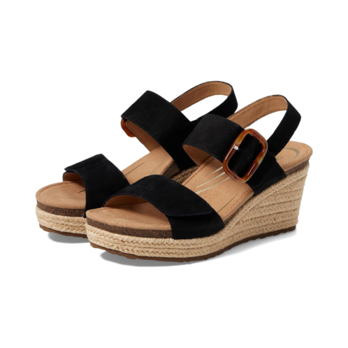 - Crafted from suede upper, the Aetrex Ashley features wedge heel, open round toe, and arch support that helps to stabilize your body, align your feet and relieve common foot pain. These sandals are super stylish and comfortable. It comes with wide straps, buckled closure, and brand detailing on the footbed.