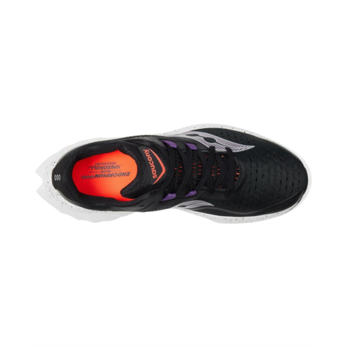 - Provide the perfect balance to your feet donning the Saucony Endorphin Speed 4. The sneaker features smooth speedroll technology for effortless speed, PWRRUN PB foam footbed, and re-engineered winged nylon plate for vertical reinforcement.