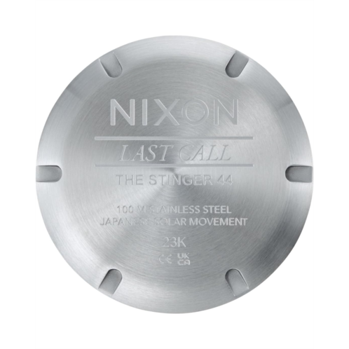 - Keep a watch on your routine activities by wearing Nixon Stinger 44 watch. It features stainless steel bracelet with clasp closure. An analog dial with 3-hand movement makes it perfect for timekeeping.