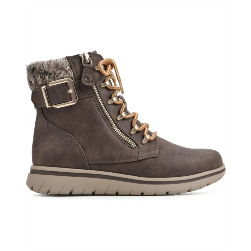 Explore urbane streets wearing the fashionable Cliffs by White Mountain Hearten Lace-Up Boots. This lightweight footwear features textile upper construction with buckle-accented ankle, zippered side closure, and a round toe silhouette.