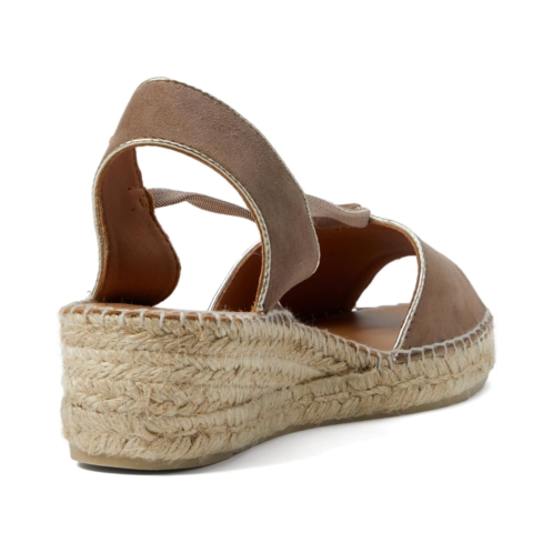 - Complete your sunny day look with the Toni Pons Bilda Sandals boasting a fusion of authentic style with traditional craftsmanship. These are framed with a soft suede or denim upper with a subtle metallic leather trim, a breathable leather lining, and a cushioned insole for all-day comfort. The design comes with an ultra-thin, stretch strap detailing for an easy slip-on fit and a jute-wrapped wedge heel for added style.