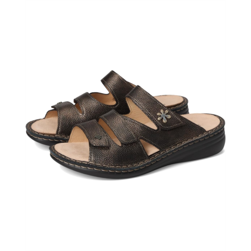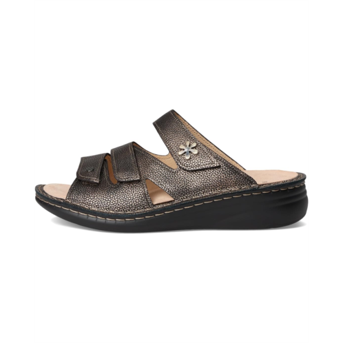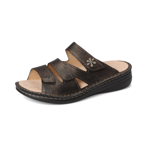 - With its super soft yet supportive FinnMellow footbed and easy on and off design, the Finn Comfort Grenada Copper Natural sandal provides all-day cushioning that helps distribute pressure evenly upon your feet, which in turn can help relieve stress on your joints. All this with the same premium leathers, velvety soft calfskin linings, and overall quality that Finn Comfort consistently provides. Smooth leather lining and soft suede-covered insole help draw out unwanted moisture to keep feet healthy and dry. Removable footbed features an anatomical heel cup with contoured midfoot, medial, and lateral arch supports.