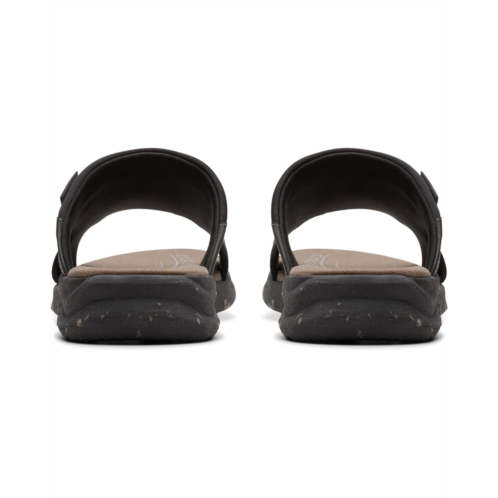 Be comfortable by wearing the Clarks Walkford Band sandal. Crafted from classic black leather, this slip-on profile ensures easy on/off. The bouncy cushioned footbed provides lasting comfort for sun-soaked days, while the slip-resistant sole offers stability. Clarks' quality craftsmanship is evident, and a subtle branding icon completes this season's staple.