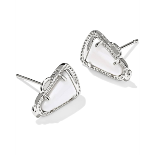 - Show off an elegant style by complementing your outfits with the Kendra Scott Cheer Stud Earrings. The simple and sophisticated stud earrings come in a rhodium plated brass construction and feature a prong setting along with a push-back closure.