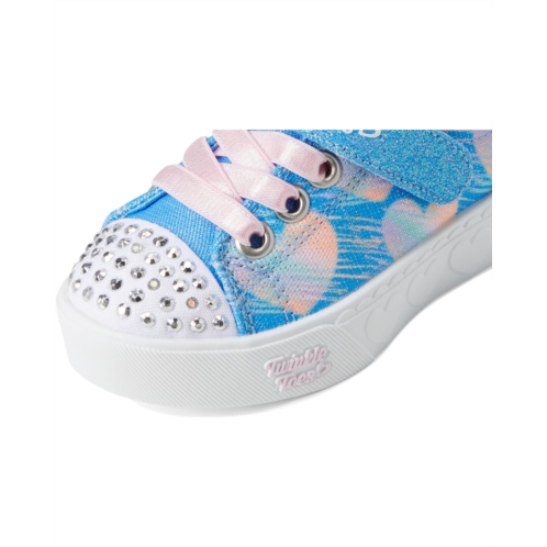 Take to the streets in this shimmer heart style wearing SKECHERS KIDS Heart Steps 314621N Twinkle Toes Heart Steps. This shimmery light-up design features a heart print canvas upper with easy on, easy off adaptive closure for a customized fit, cushioned comfort insole, adjustable instep strap, and a light-up rhinestone embellished toe cap.