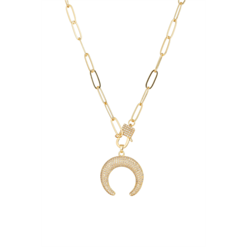 Animate your next outfit with this gold pendant necklace! This gold chain necklace features a hook pendant dazzles with small CZ crystals, all of which dangle from a paperclip chain. This is perfect for a casual night out!