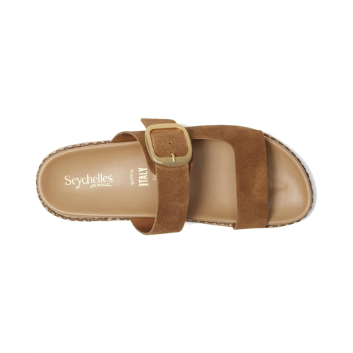 - Give comfort to your feet and flaunt a sophisticated style wearing Seychelles Getaway Suede Sandals. The slip-on style, open-toe sandals feature a double strap leather upper, leather lining, and a classic faux leather footbed. The oversized buckle detail elevates the look effortlessly.
