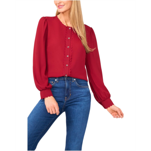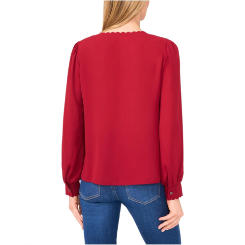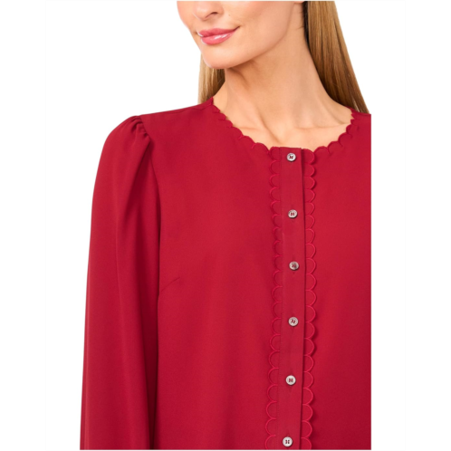 [US] Womens CeCe Long Sleeve Button Down Scalloped Top