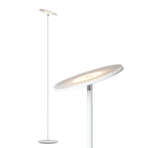 One of our most popular lamps, Brightech's Sky LED Torchiere Floor Lamp is perfect for any room with its' integrated LED light that pivots and shines light in any direction you need. With 2190-Lumens, Brightech's Sky is enough to light a large room! This pole lamp stands 63' tall, featuring a sturdy base and a built-in three-way dimmer that remembers your brightness setting for the next time you turn it on. The unique design matches modern, minimalist, urban, casual, and contemporary decor, perfect for your bedroom, office, or study.