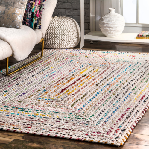 Brighten your room with this distinctively vivid rag rug. Hand crafted in India of recycled cotton, each piece carries with it a variation in color and pattern unique to the artisan who wove it. Because of the handmade nature of these rugs, no two will look exactly alike.