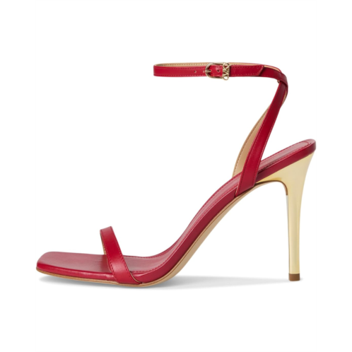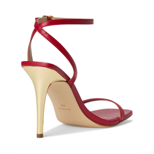 - The MICHAEL Michael Kors Liana Sandal features barely-there straps that elongate the leg and complement formal or evening looks. The modern square toe adds architectural edge, while the slim stiletto heel delivers height and elegance. A buckle-adjustable ankle strap ensures a secure fit.